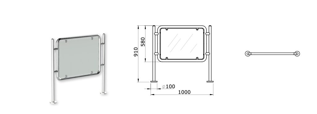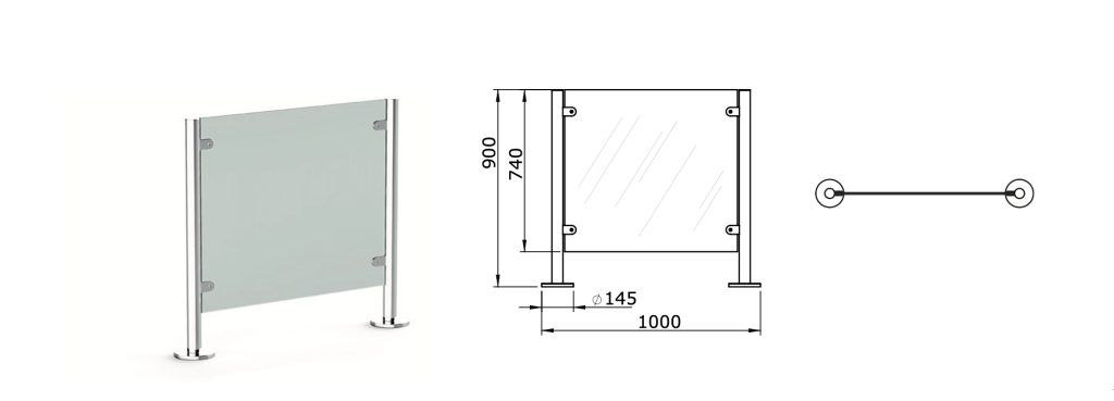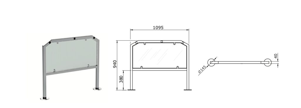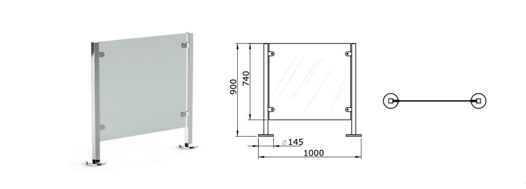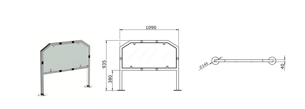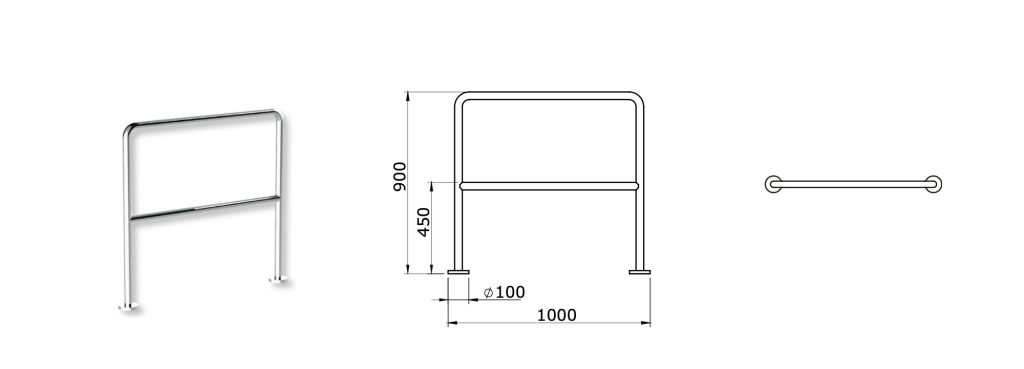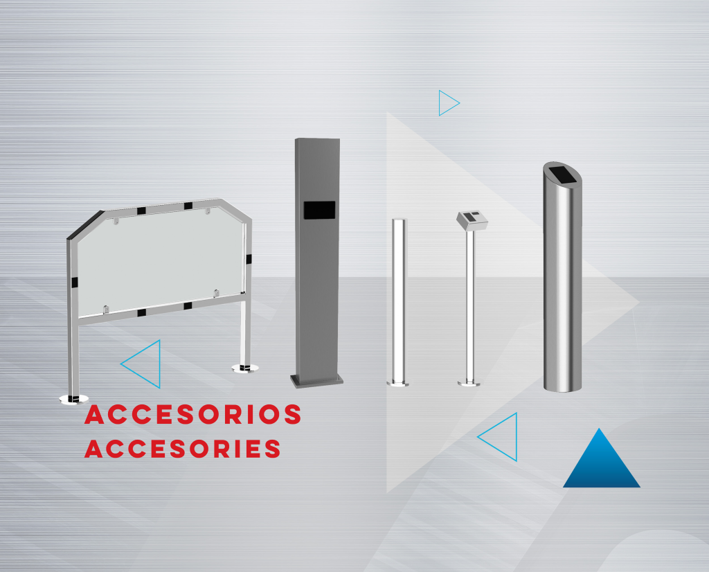 Separator railings made of stainless steel tube to close off a row of turnstiles or to support the reflectors for the units with photoelectric cells. There are two different types, depending on whether they are fixed or removable (by simply pulling the railing upwards).