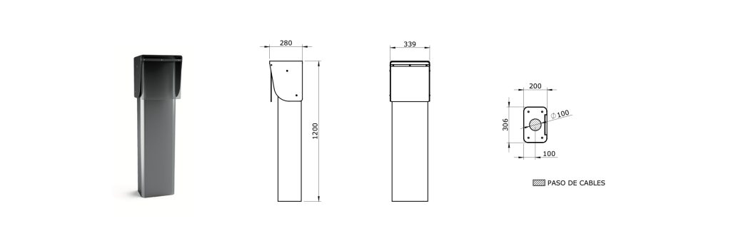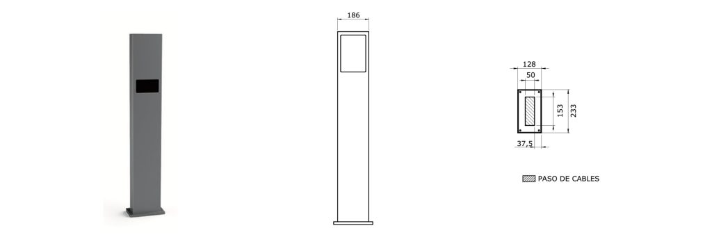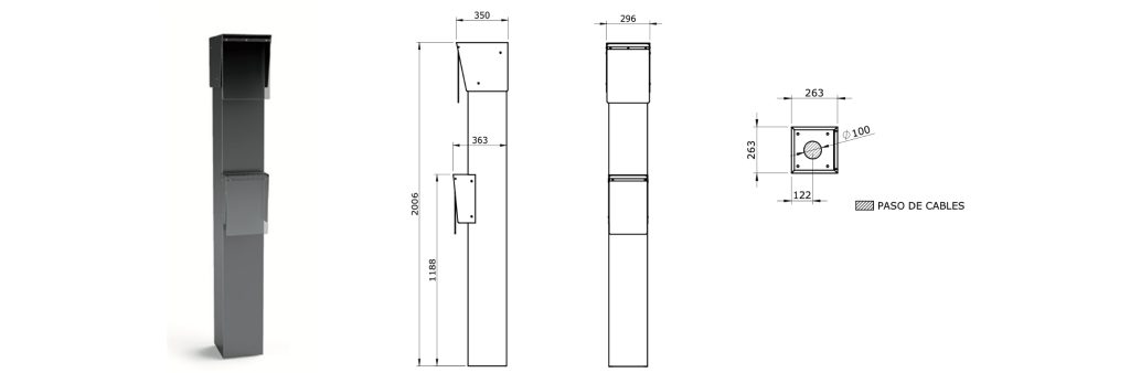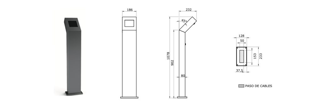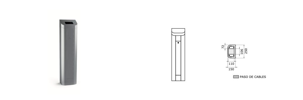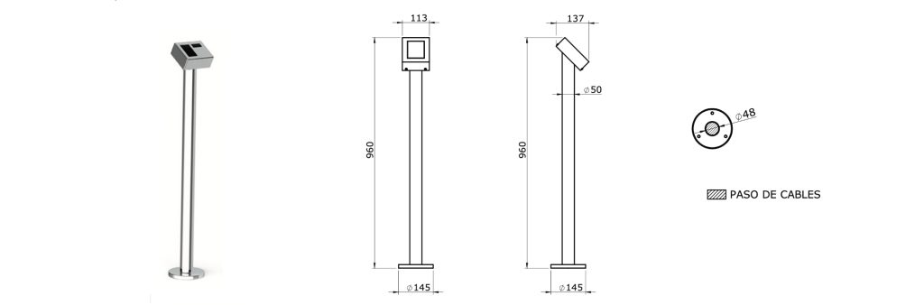 Pedestal of automobile height, manufactured in stainless steel AISI 304 or AISI-316 mechanized to hold standard readers. (For inside or outside installa- tion).