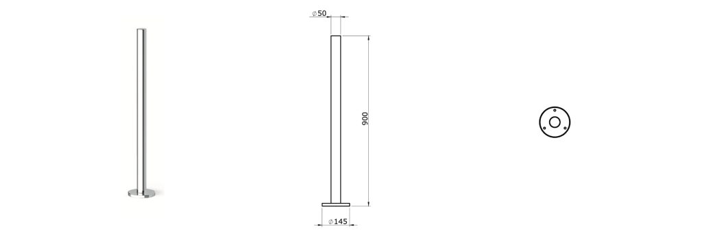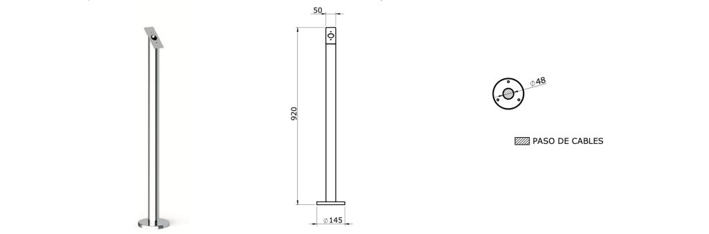 Standard pillar for the closure of spaces, manufactured in stainless steel tube AISI-304 or AISI- 316 with a diameter of 50 mm