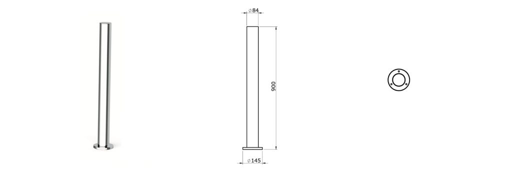 Standard pillar for the closure of spaces, manufactured in stainless 84 steel tube AISI-304 or AISI- 316 with a diameter of 80 mm