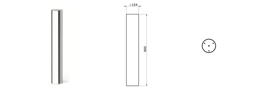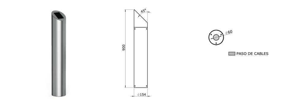 Special pillar for the closure of spaces, manufactured in stain- less steel AISI-304 or AISI-316 with a diameter of 150 mm..