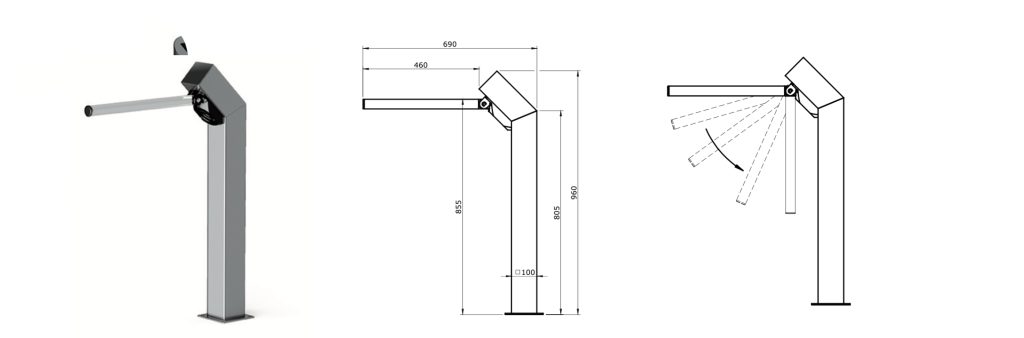 Rectangular tube pedestal manufactured in stainless steel AISI-304 o 316, which supports a head, in which, there is the folding mechanism that closes and folds with a power cut made from a switch whose signal receives from the turnstile.