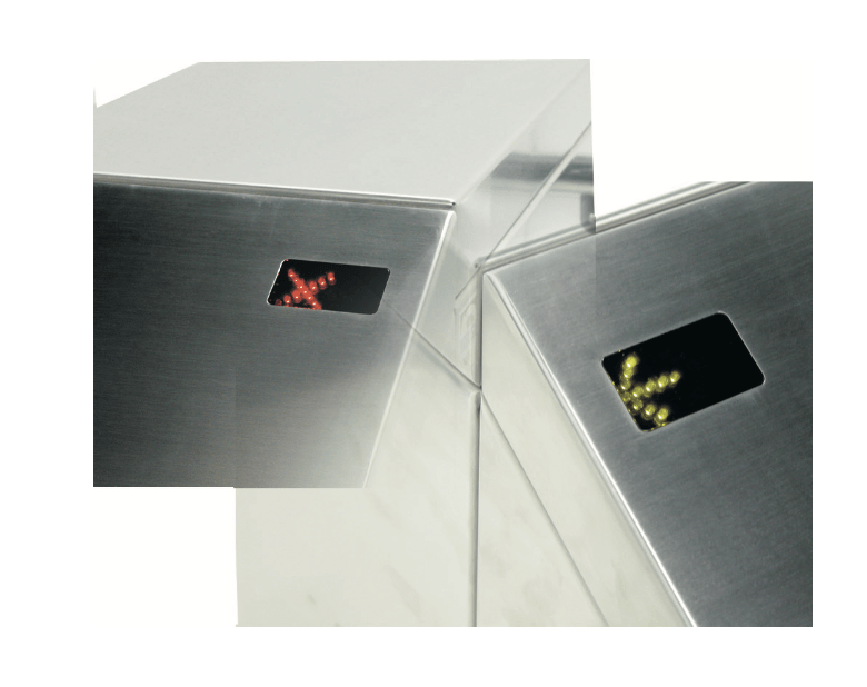 The direction of passage (entry and exit) can be unblocked from the console, and in an emergency situation the turnstile tripod arms can be dropped down.
