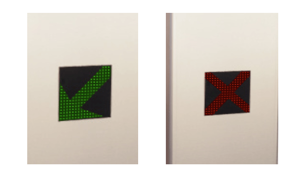 Information elements with high brightness leds showing a green arrow when the passage is open, or a red cross when it is closed. They can be fifitted on each of the sides of a unit to be viewed frontally.