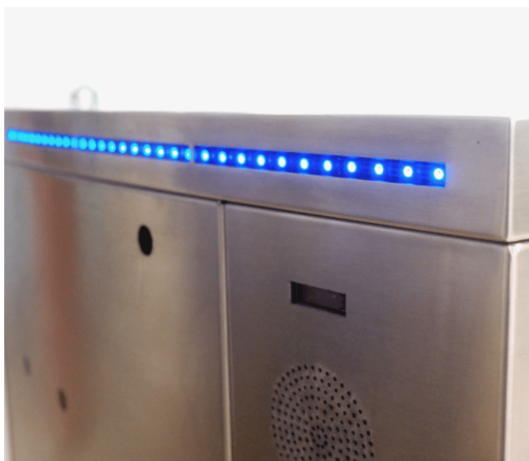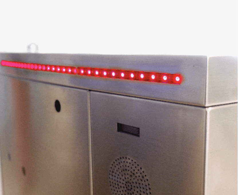 Signaling elements with high luminosity LED strips marking with green color when the passage is unlocked or open and with red color when the passage is blocked or closed.