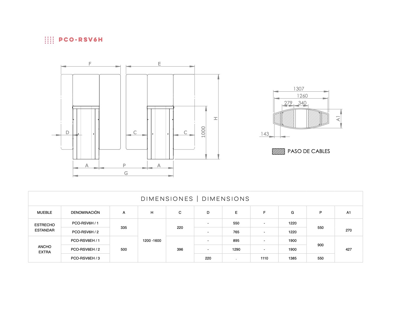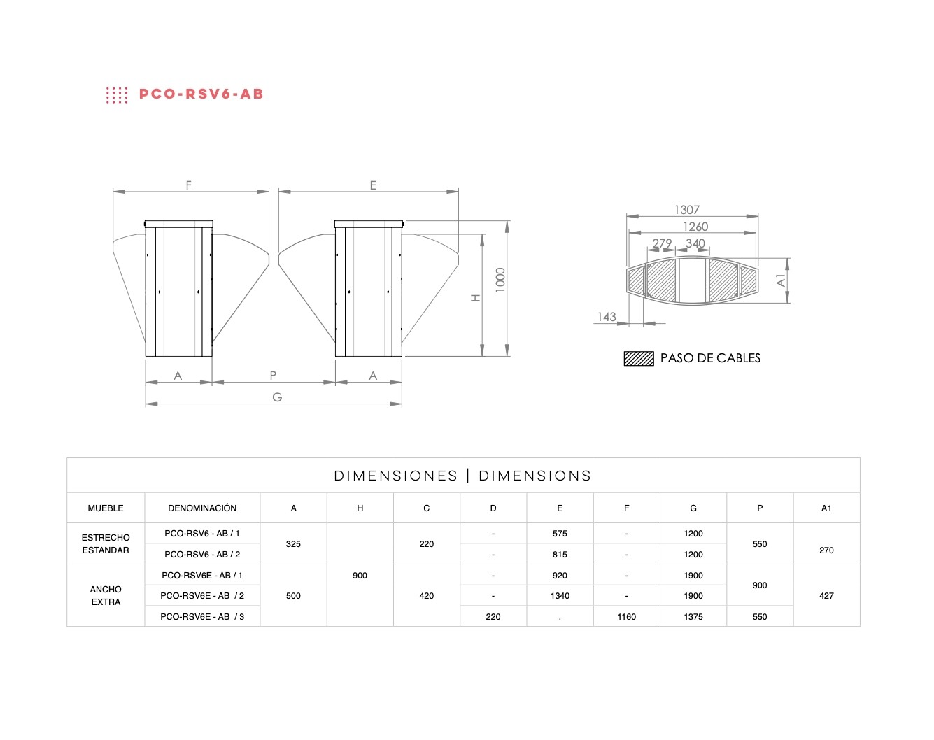 - Cabinet structure with suitable measurements to house validation readers, as well as control elements or pictograms, among others.