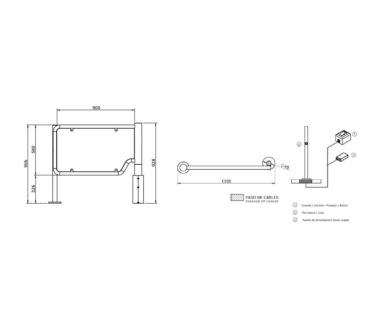 Hand-operated swinging gate with special width dimen- sions, perfect for suppliers and people with reduced mobility, or in wheelchair. Unidirectional or bidirectional operation depending on the model. This model is suitable for both indoors and outdoors installations always controlled by security personnel.