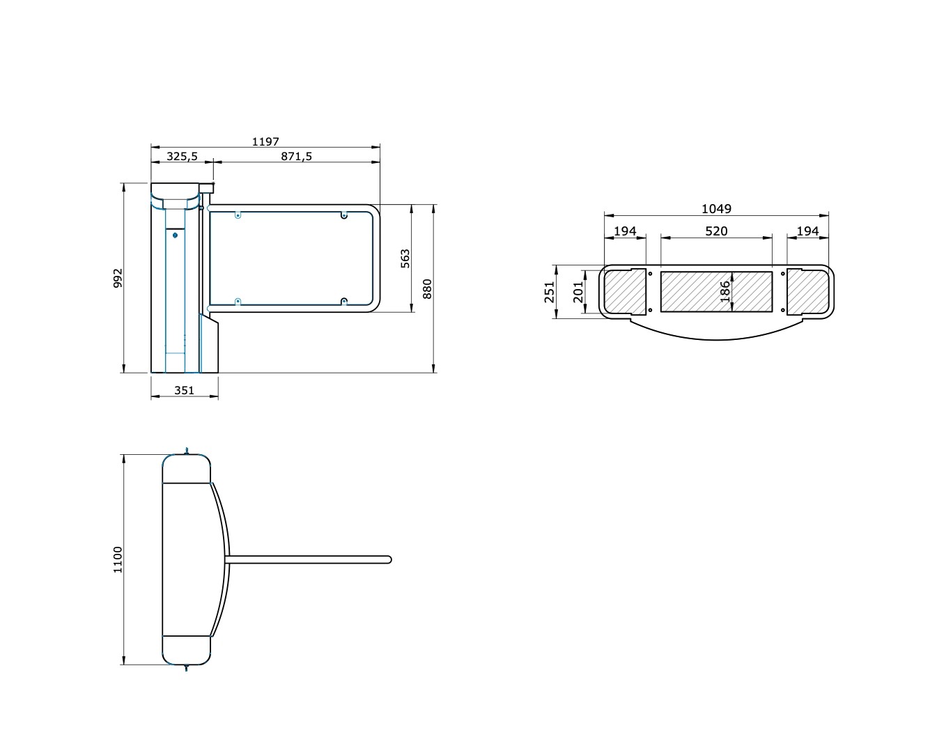 Smart and touchless gate composed of one single cabinet with a bidirectional panel, ideal for people with reduced mobility or wheel- chair users. Once the gate receives the opening order, it swings its panels towards the inside of the cabinet allowing the user to pass through, and closing again once the passage has been completed. This model is especially suitable for indoors with minimal surveillance or very well protected exteriors