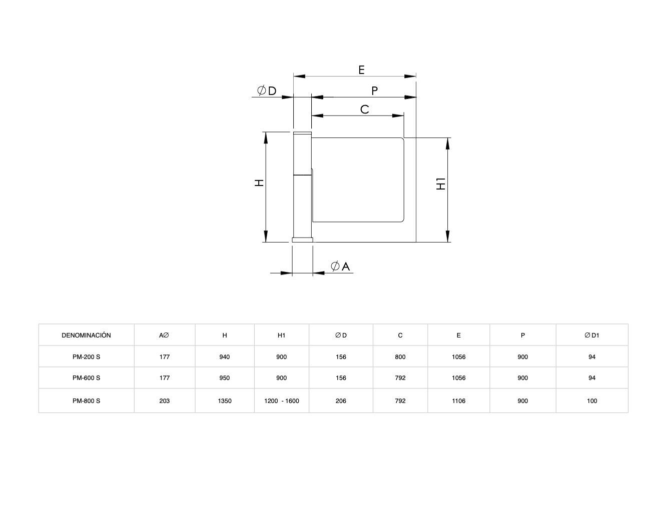 Pedestal fabricado en acero inoxidable AISI-304 ó AISI-316 de 1.5 mm de espesor.