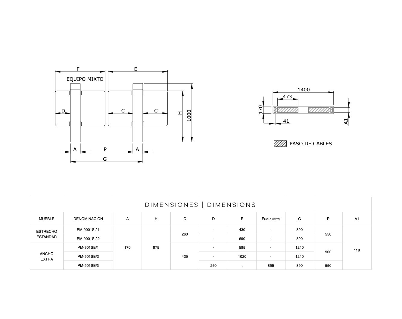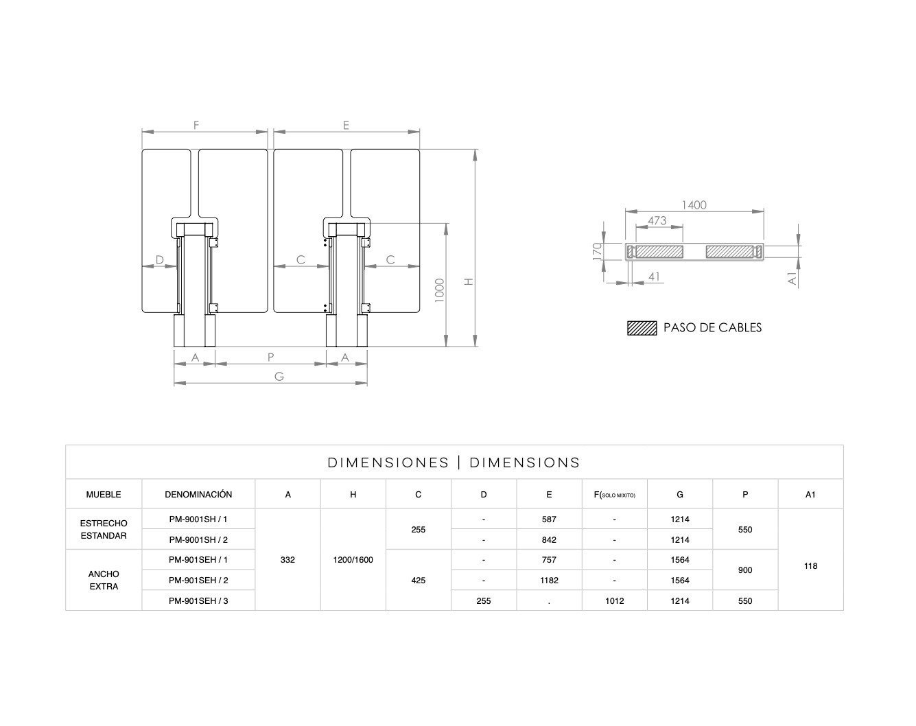 - Cabinet structure with suitable measurements to house validation readers, as well as control elements or pictograms, among others.