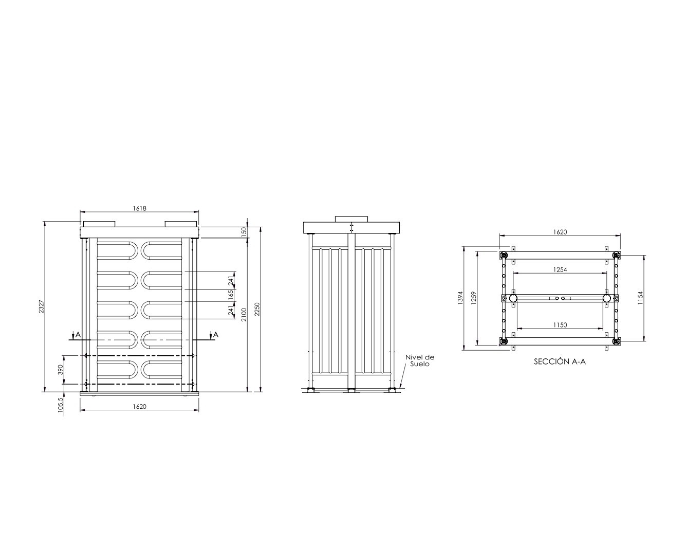 - Made of AISI-304 or AISI-316 stainless steel, 1.5 mm thick, with satin finiish.