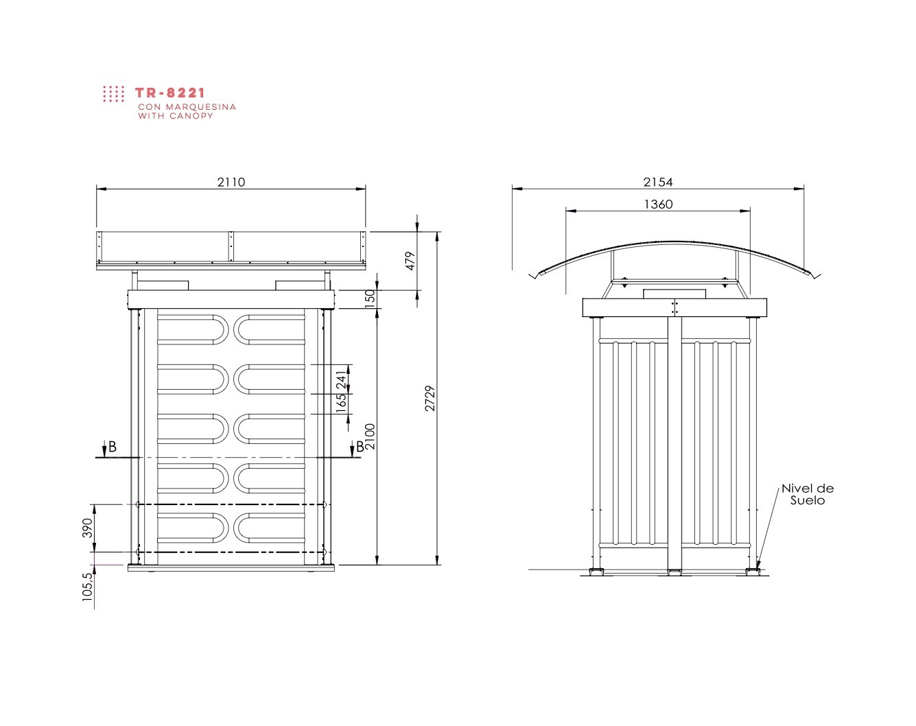 The design of the system is based on achieving maximum security for protection of restricted areas. The space of the arm is suitably distributed for this purpose. The roof is also protected and it can be combined with supplementary closures such as canopies, in order to guarantee protection of the unit, and the user, from the inclemency of the weather.